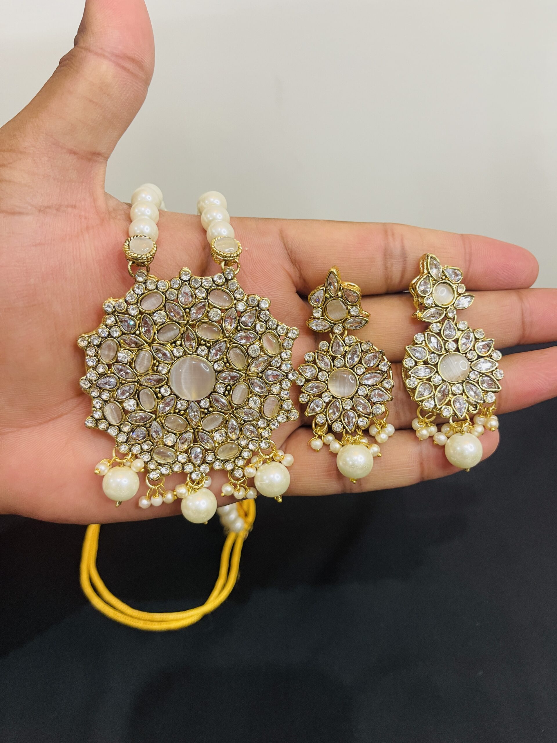 Be the first to review “Authentic Real Kundan Pearl Necklace Set with Matching Earrings”