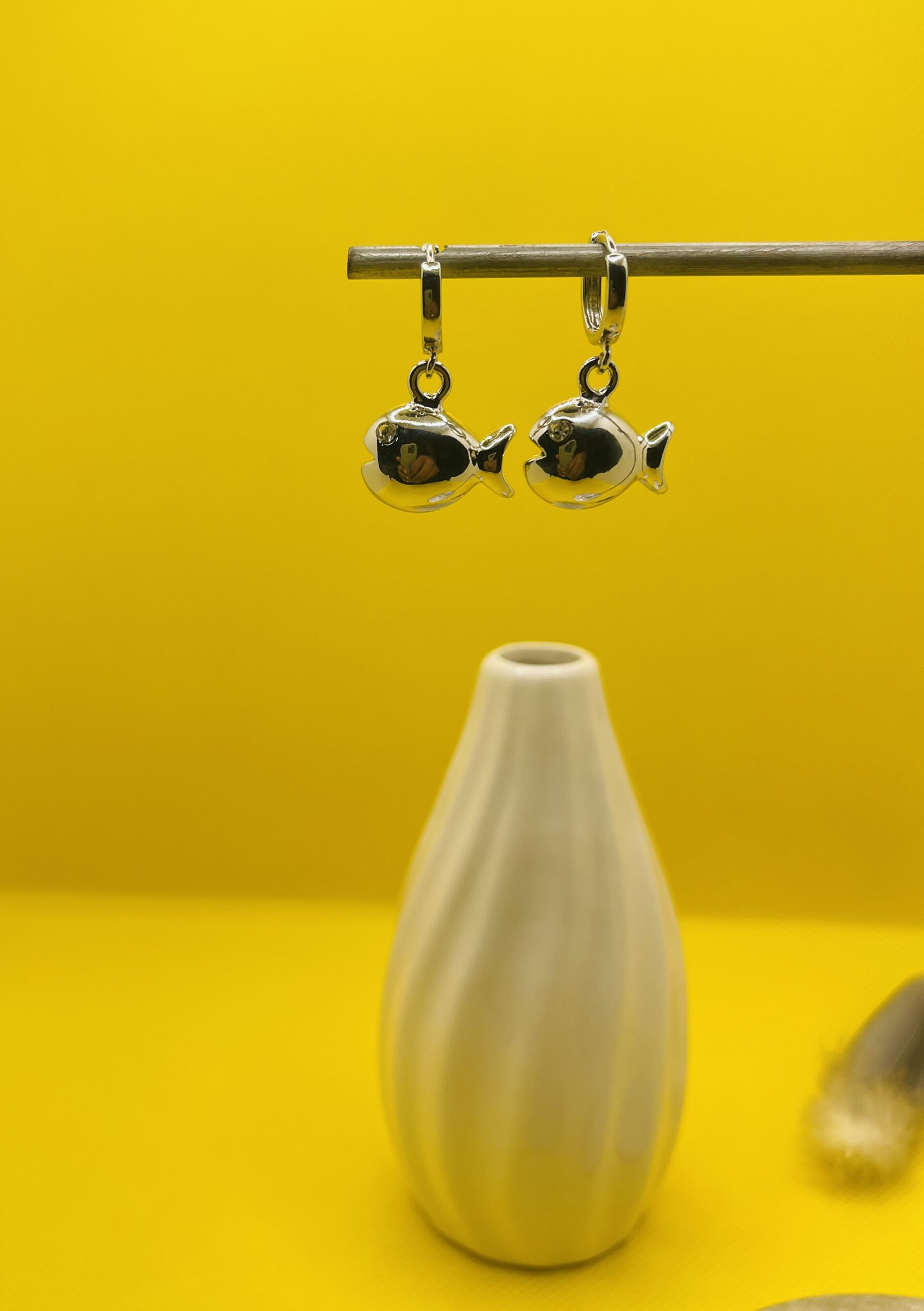 Add a playful touch to your jewelry collection with these stylish silver fish-shaped AND MANY MORE dangle earrings. Crafted with a sleek metallic finish and a tiny crystal accent, these earrings bring together fun design and modern elegance.