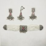 Elegant Mauve Pink & Silver Kundan Choker Set with Pearl Beads - Matching Earrings and Maang Tikka