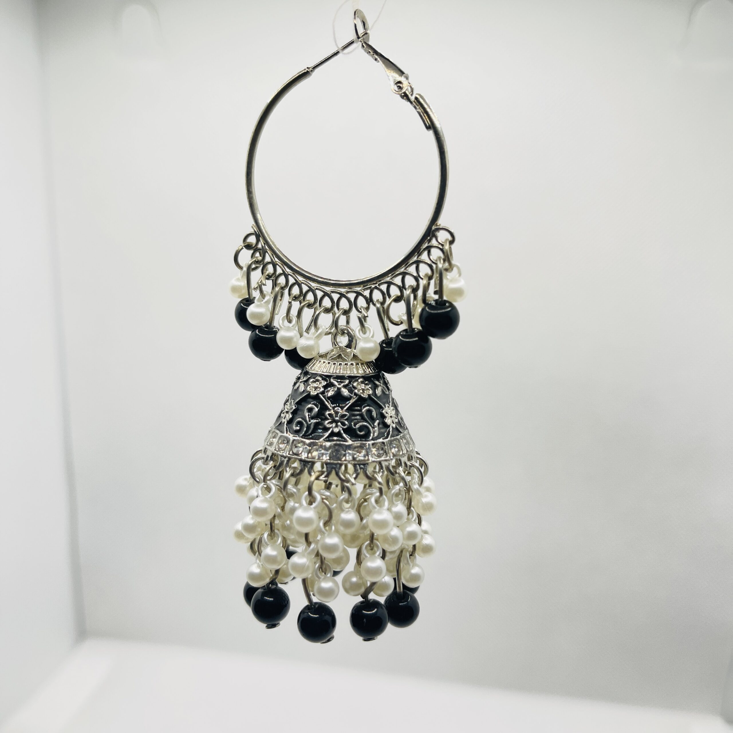 Elevate your jewelry styling with these masterfully crafted Gold-Finish Jhumka Hoop Earrings. This pair captures the essence of classic South Asian heritage while incorporating a modern hoop silhouette for a more versatile look.