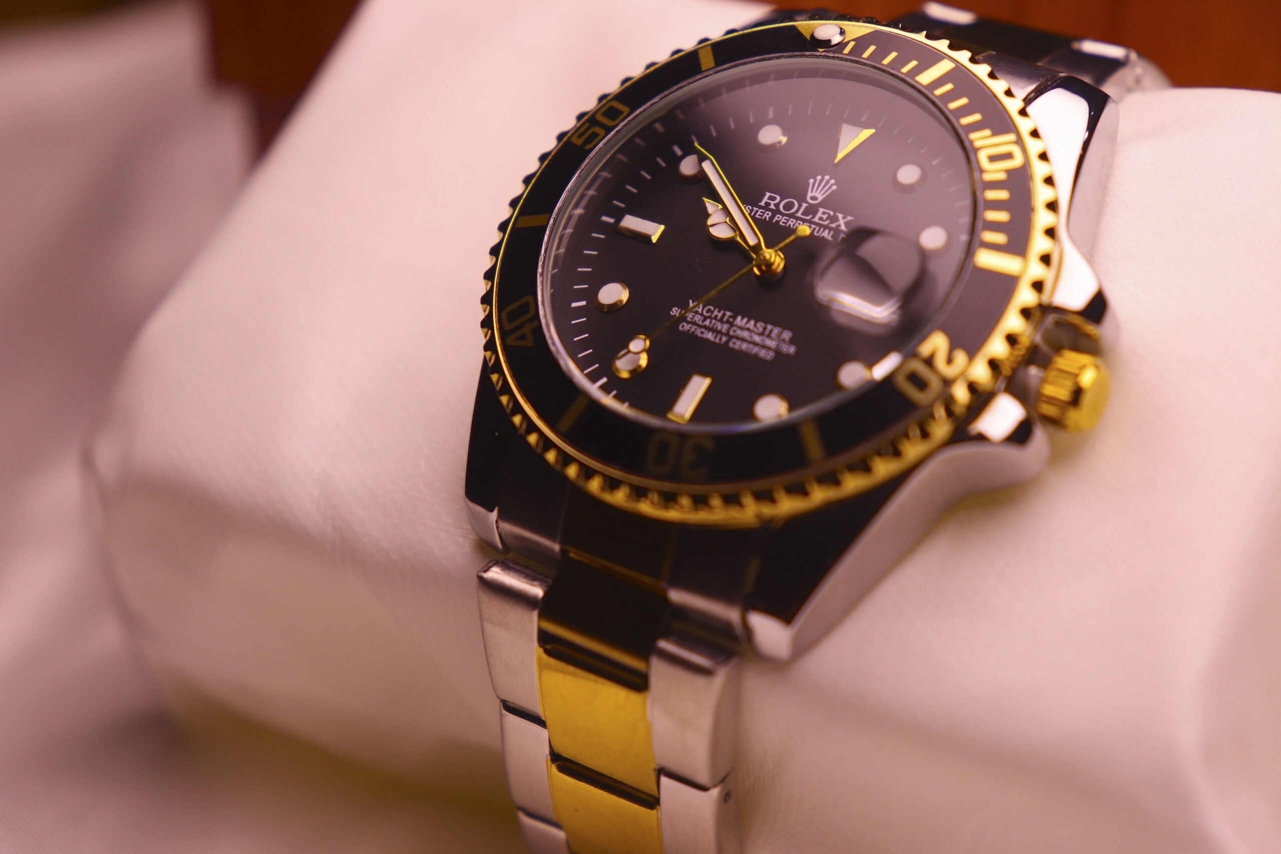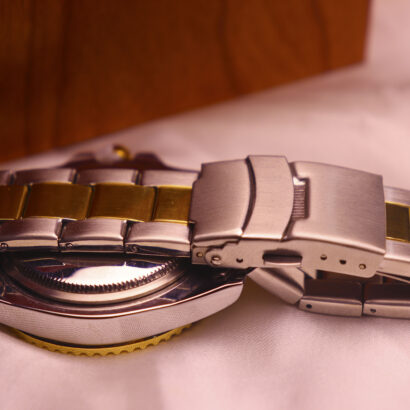 Featured here is a gorgeous two-tone version of the Rolex Yacht-Master. Its intense black dial and the unidirectional 60-minute graduated bezel provide a beautiful contrast and superior functionality. The two-tone Oyster bracelet (combining Oystersteel and Yellow Gold) not only ensures robust strength but also adds a classic, instantly recognizable luxury appeal.