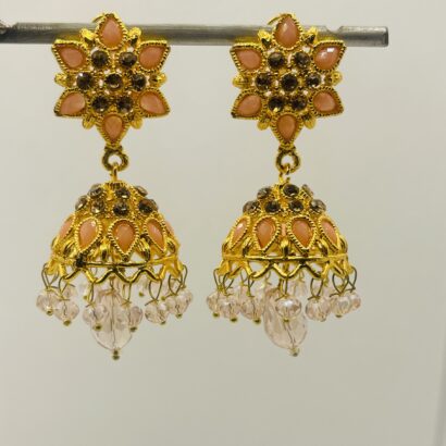 - Designs Included: Black & Golden Jhumkas, Peach & Gold Crystal Jhumkas
