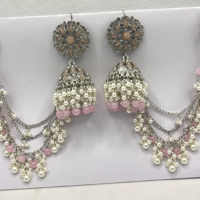 Elevate your ethnic wardrobe with these exquisite Silver & Blush Pink Jhumka Earrings.